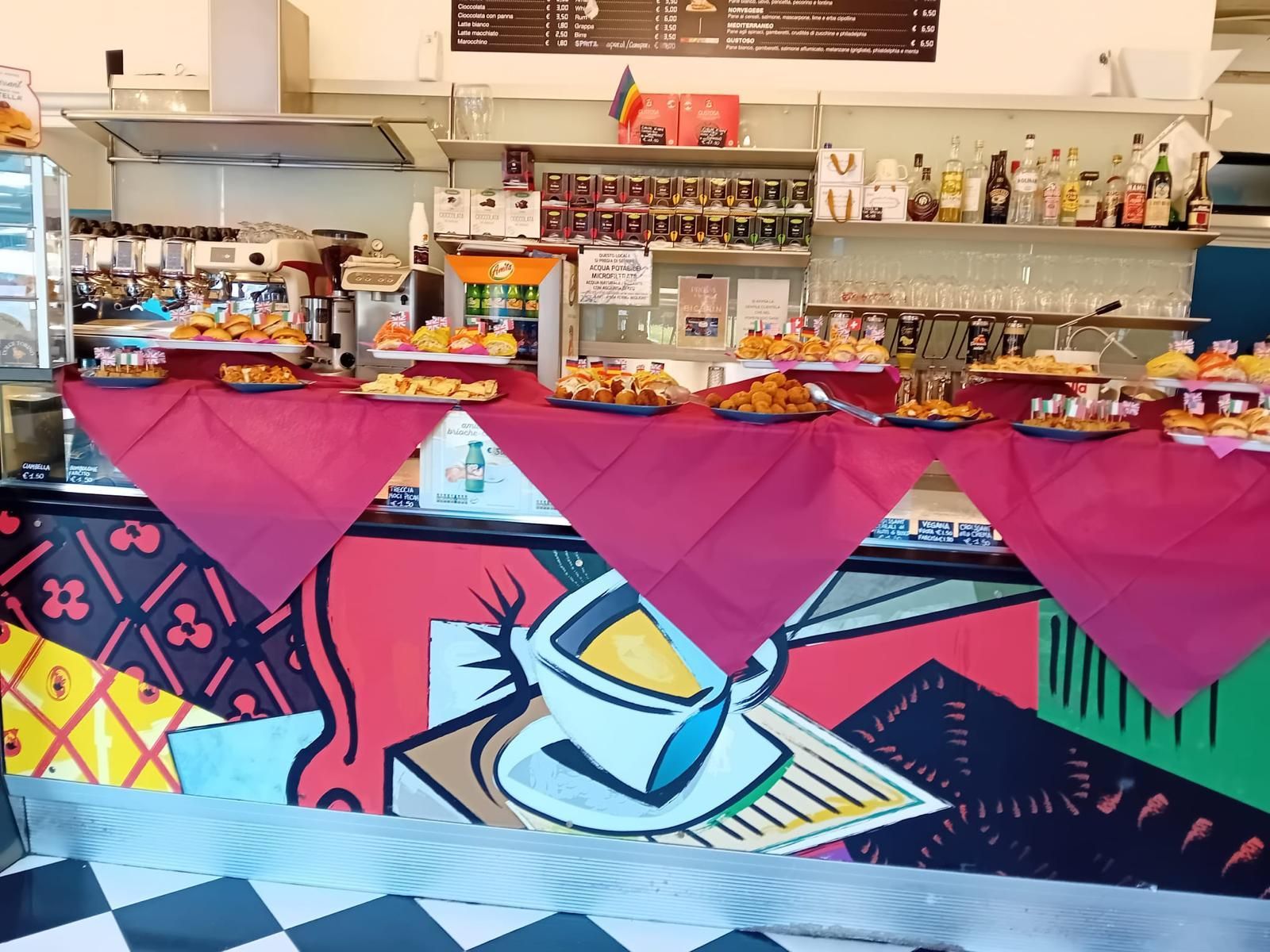 Il nostro bar caffetteria è anche un locale accogliente ed elegante dove puoi consumare tanti prodotti genuini e aperitivi di qualità. Utilizziamo esclusivamente ingredienti semplici e genuini reperiti dai migliori produttori locali per garantire il meglio e massima freschezza. Gli aperitivi sono organizzati con un perfetto abbinamento tra prodotti gastronomici come salumi, formaggi, prodotti di rosticceria, ricette tradizionali, cocktail e bevande alcoliche di ogni genere. Inoltre nel bar è possibile accogliere qualsiasi genere di evento come il rinfresco per una laurea, per un compleanno e offrire un servizio di catering presso qualsiasi location. Per maggiori informazioni su tutti i servizi e prodotti offerti dal nostro bar e per qualsiasi altra richiesta, contattaci utilizzando il numero di telefono indicato.